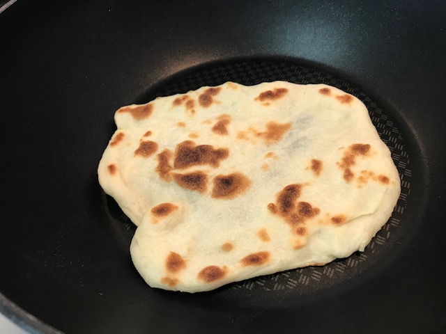 8. Heat up the frying pan. Place the Naan bread into the drying pan and pan fried for a couple of minutes and it is done!